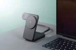 Support magnétique à l’avant (15 W) et socle à l’arrière (5 W) pour recharger deux téléphones à la fois.